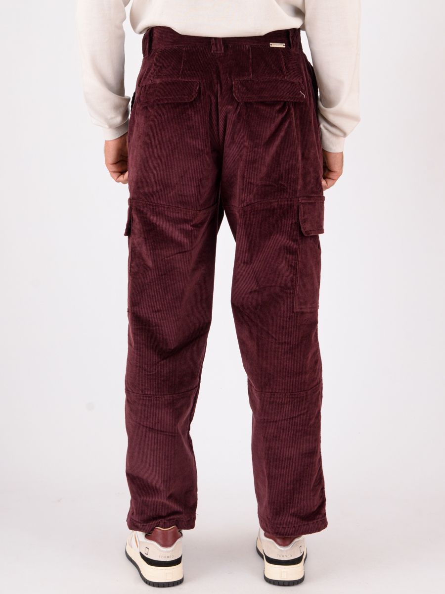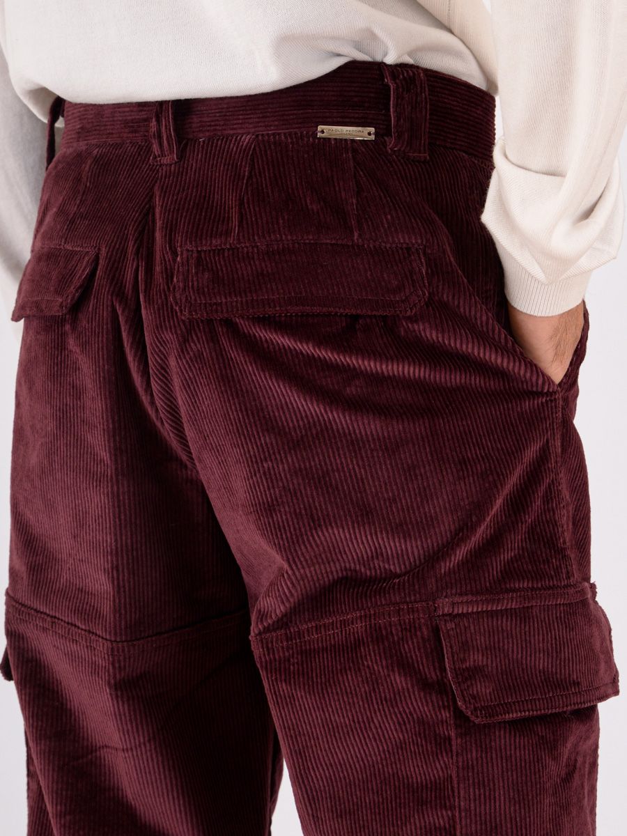 Pantalon cargo homme Paolo Pecora Milano en velours stretch Bordeaux b0720227