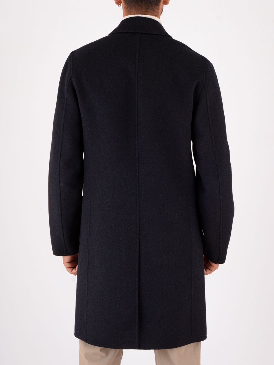 Cappotto sfoderato realizzato in pregiato panno double misto lana, caratterizzato da una lavorazione artigianale che garantisce leggerezza e calore. Il design presenta chiusura a tre bottoni, due tasche frontali a toppa e polsi senza bottoni per un look pulito e contemporaneo. Un capo versatile e raffinato, perfetto per completare outfit casual o formali con eleganza discreta.