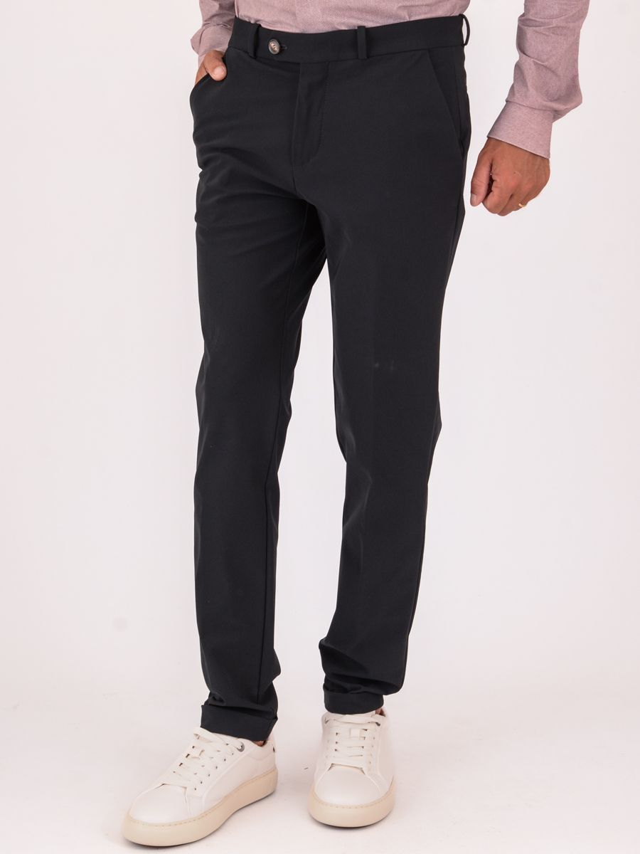 Pantalone chino da uomo realizzato in tessuto stretch Winter Surflex®, con effetto super opaco e finitura liscia. Modello slim fit, con chiusura a doppio bottone in corno, zip coperta, tasche laterali alla francese e posteriori a filetto con logo a microiniezione. Fondo risvoltato per un tocco elegante. Facile da gestire, antipiega ed easy care, ideale per look smart casual e formali.