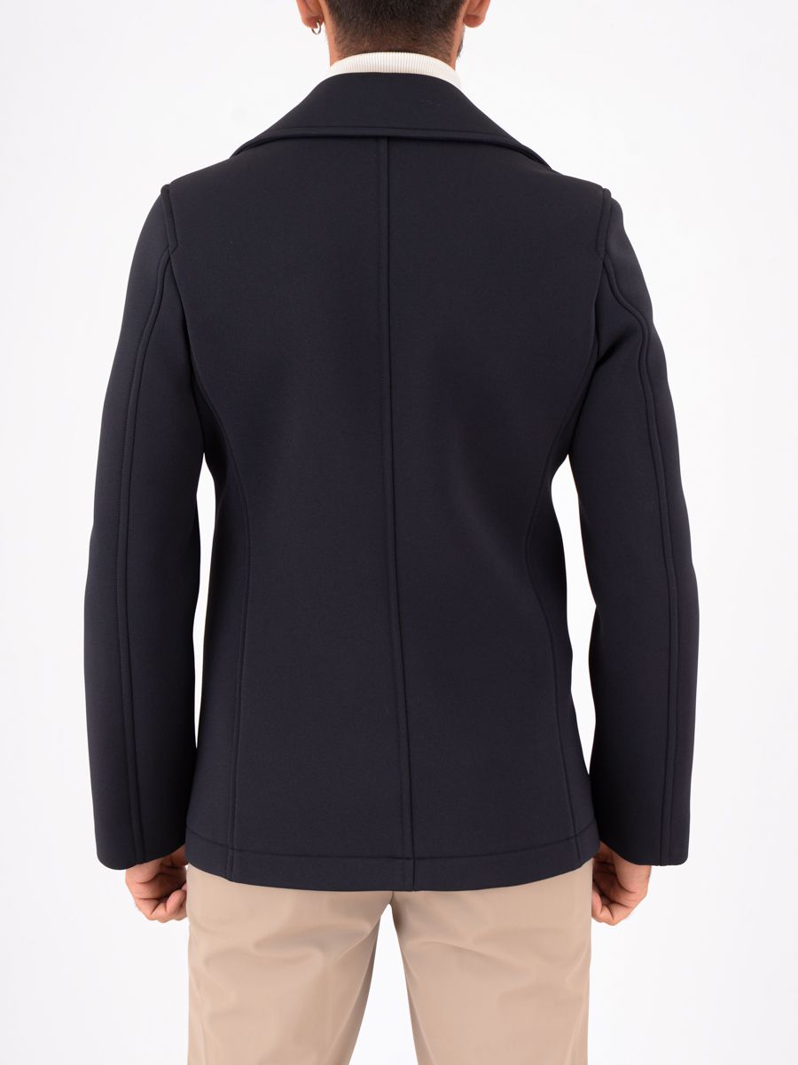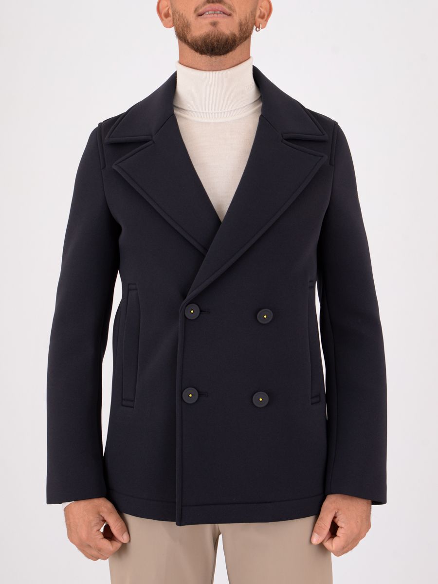 Peacoat uomo Manuel Ritz sfoderato, realizzato in scuba tecnico accoppiato stretch che garantisce comfort e libertà di movimento. Il modello presenta chiusura frontale con bottoni, due tasche laterali, logo applicato sulla manica e finiture con impunture che aggiungono un tocco sartoriale. Un capo d’ispirazione classica rivisitato in chiave contemporanea, perfetto per la mezza stagione e per un look urbano raffinato.